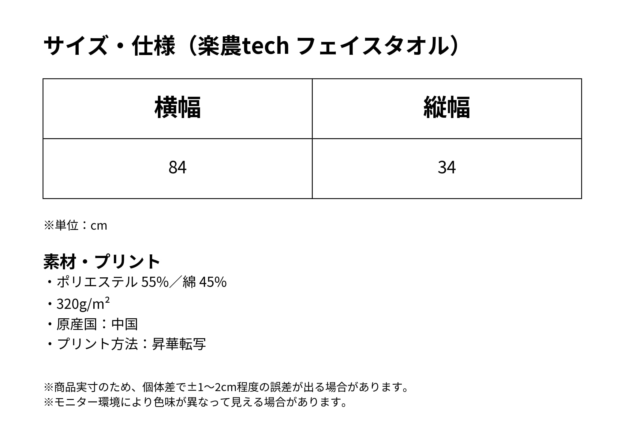 楽農techらしく「使える」を重視したフェイスタオルです。